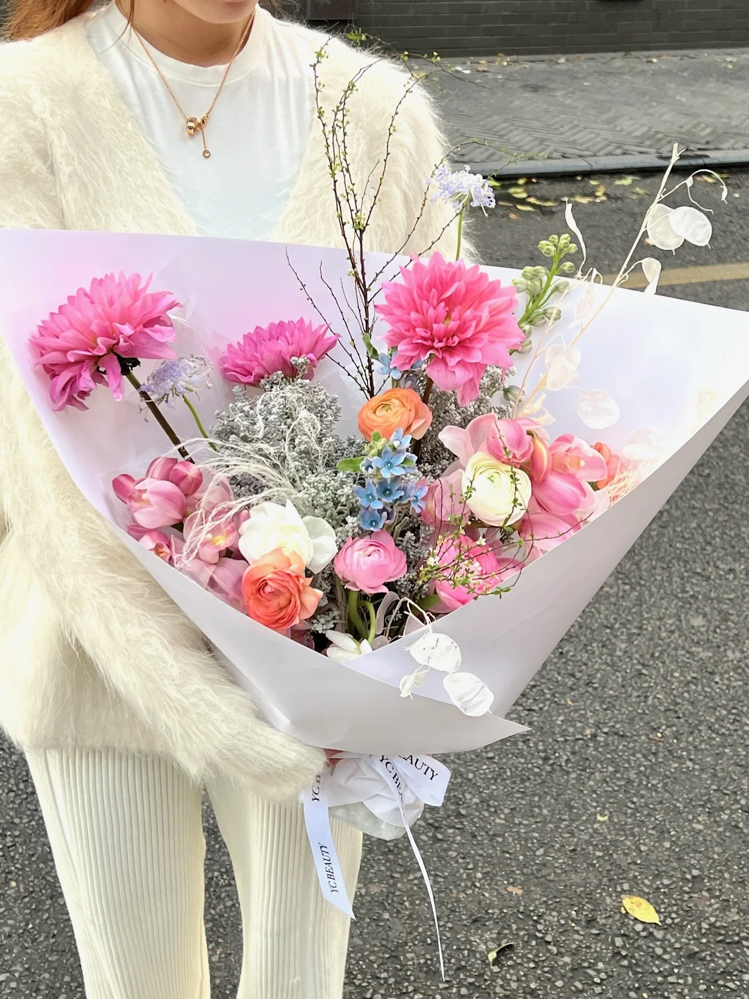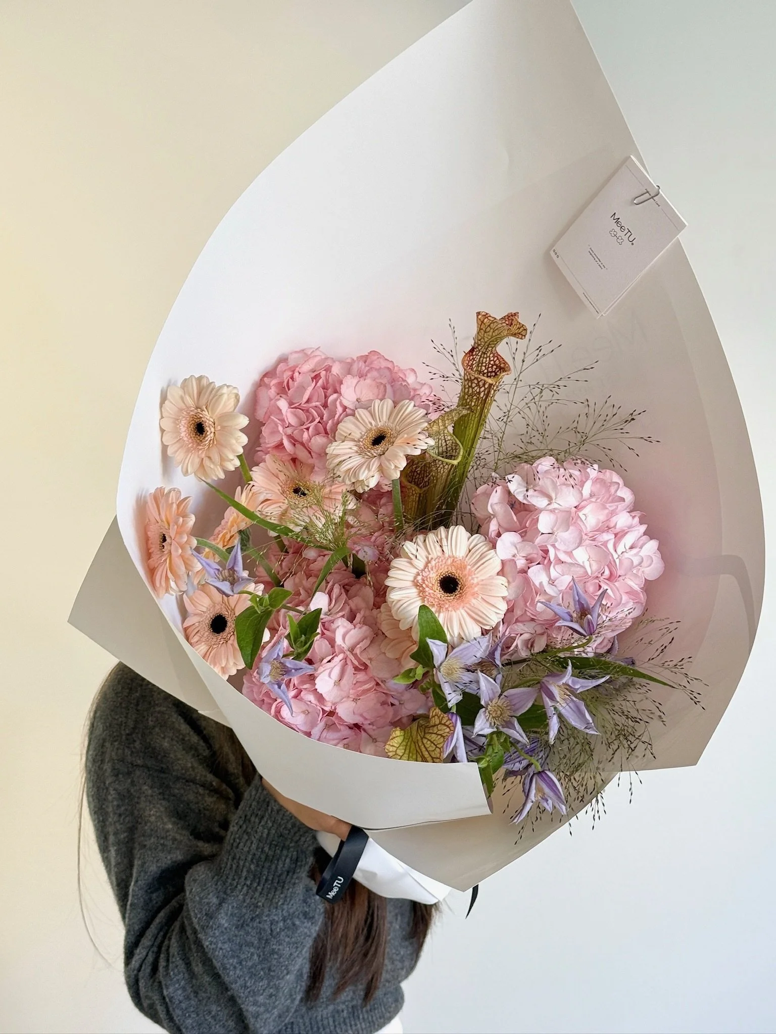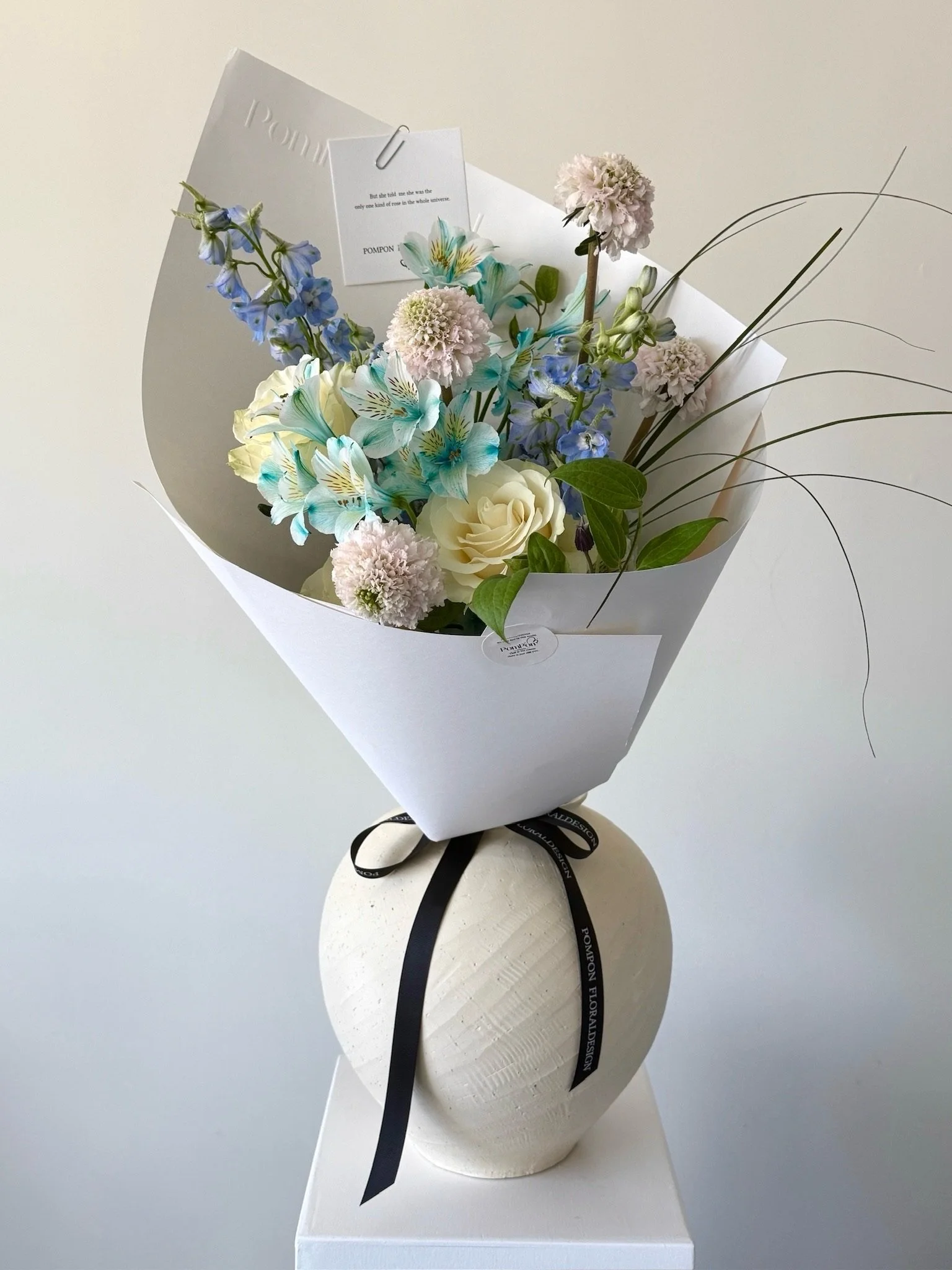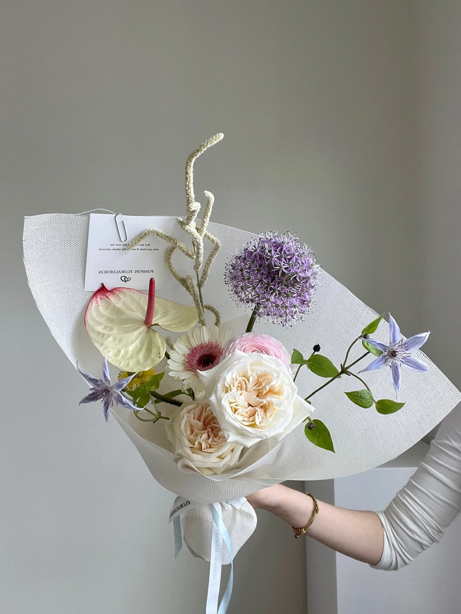 • The bouquet will be designed with seasonal exotic flowers to bring you the beauty of nature in four seasons. All arrangements are one-of-a-kind and unique.
